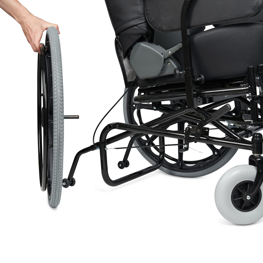 Задние колеса быстросъемные. На рукоятках ручные тормоза для сопровождающего |